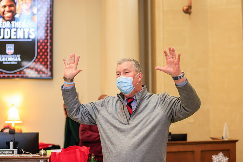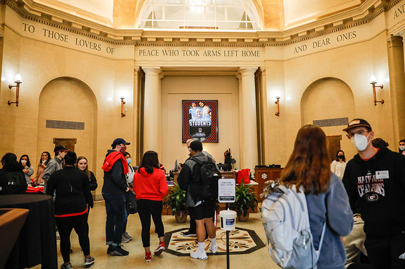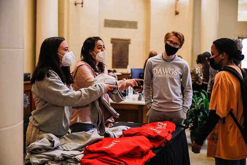 On the afternoon of January 13, the university hosted a New Student Welcome in the Memorial Hall Rotunda just for this group of UGA’s newest students. Attendees enjoyed food, received “DAWGS” t-shirts, took photos with Hairy Dawg, and were formally welcomed by select senior administrators, staff, and fellow students.