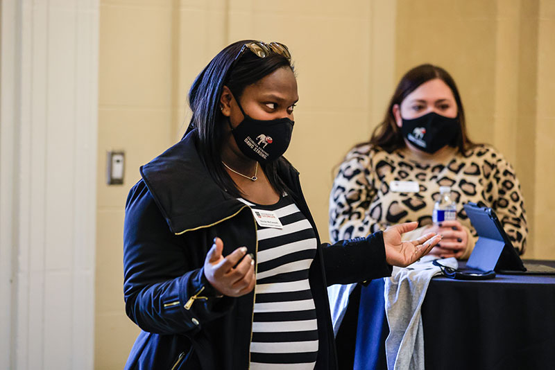 A photo of some of the attendees on the Memorial Hall front steps marked the occasion, providing a similar milestone to the annual Super G class photo on Dooley Field at Sanford Stadium each fall. The hope is that the annual spring event grows so that similar photos of these unique cohorts can serve as a reminder to these students that they are an important part of the Bulldog Nation and feel welcome and engaged.